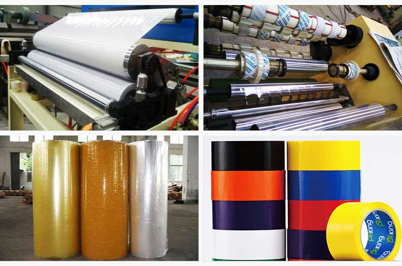 這是一種從薄膜到制成成品膠帶一次完成的機器。這款機器同時也可以根據客戶需要,印上廣告字?商標?圖案等。膠帶的分切寬度于長度也可以在這臺機器上任意調整。這款設備可以生產透明膠帶.不透明膠帶.印字膠帶或者類似膠帶的產品。